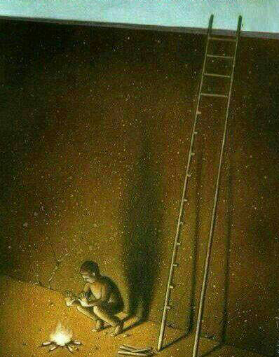 第二題,漫畫(huà)題:一個(gè)人在井里烤火,烤火的木柴是井里的梯子,起標(biāo)題,并談看法。